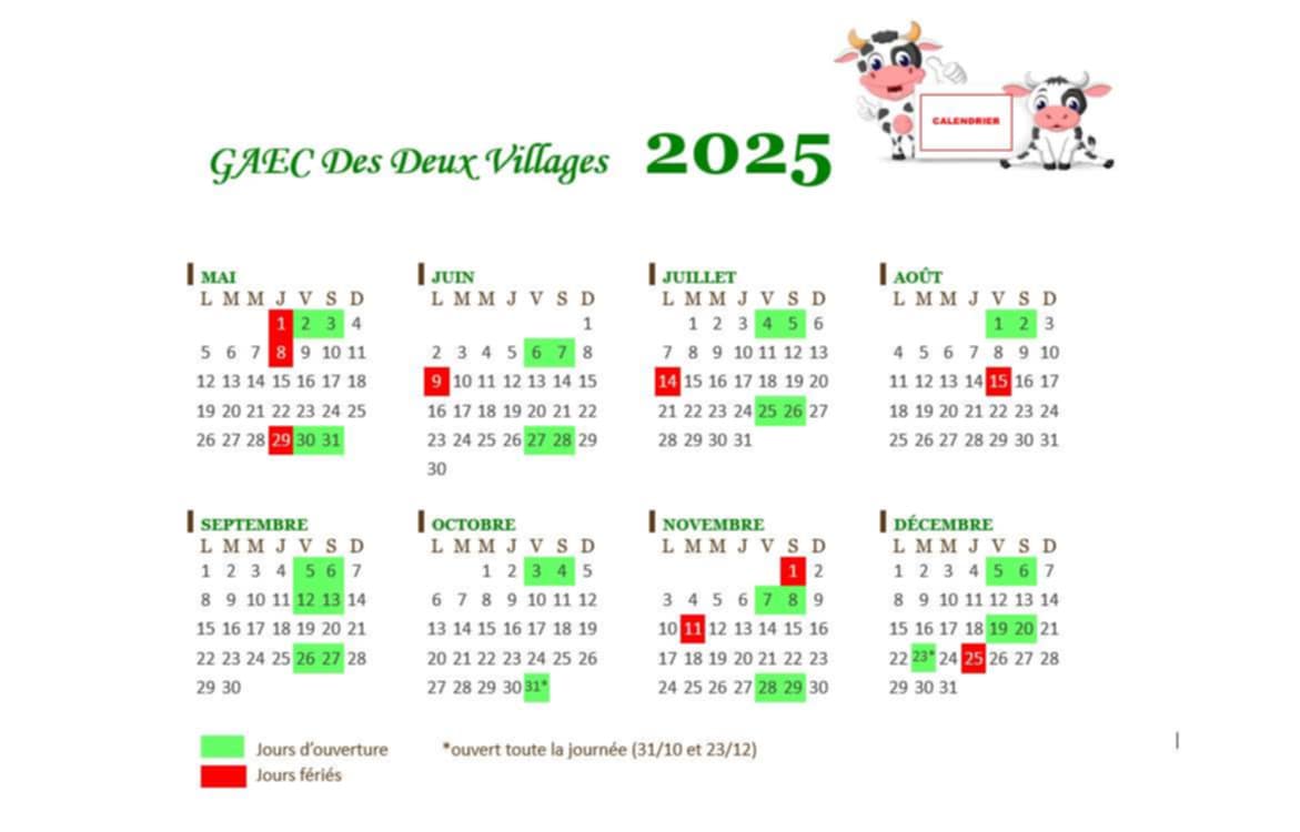 Fermeture annuelle tout le mois d'août et le 2ème week-end de janvier